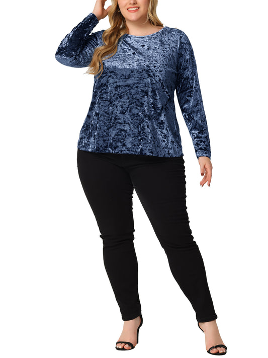 Women Plus SIze Velvet Top Tops Crew Neck Long Sleeve Vintage Retro T-Shirt