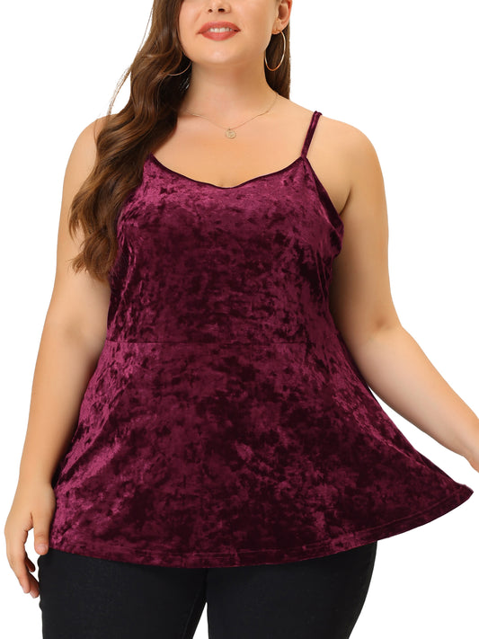 Women Plus Size Cami Top Adjustable Strap Sleeveless Velvet Peplum Camisole