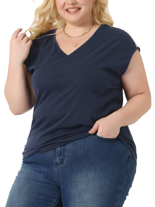Women Plus Size T Shirt Short Sleeve V Neck Basic Casual Summer Top