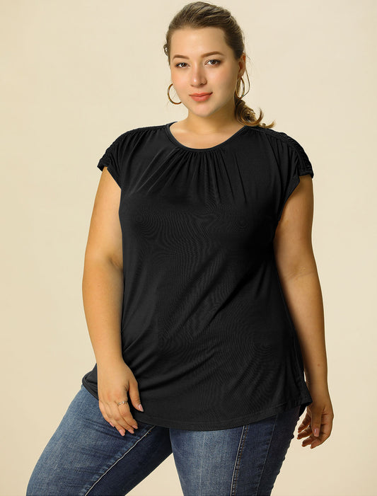 Women's Plus Size Blouse Ruched Round Neck Casual Short Sleeves Top