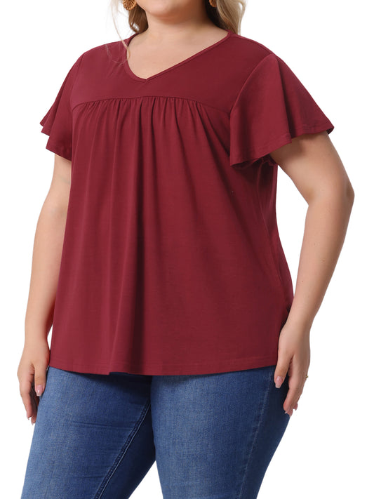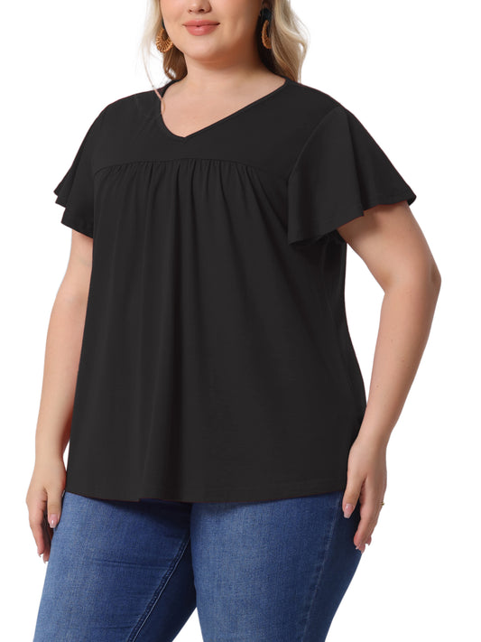 Women's Plus Size V Neck Ruffle Short Sleeve Tops Summer Blouse