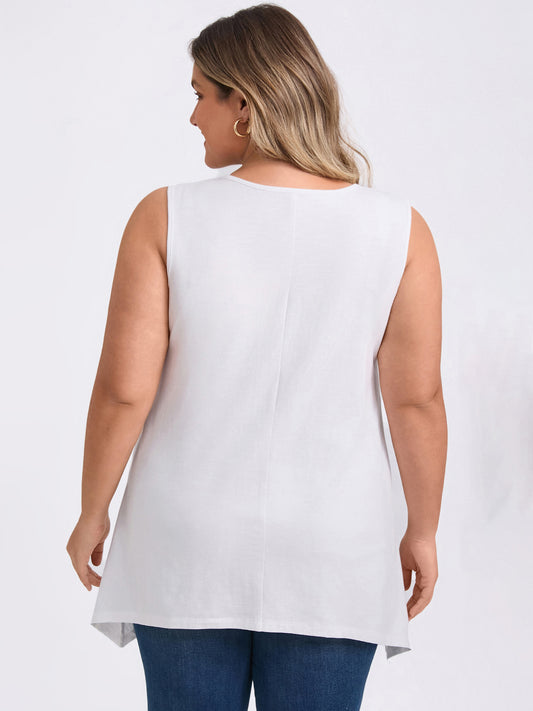 Women Plus Size Tank Top Sleeveless High Low Hem Summer Basic Casual Top with Pockets