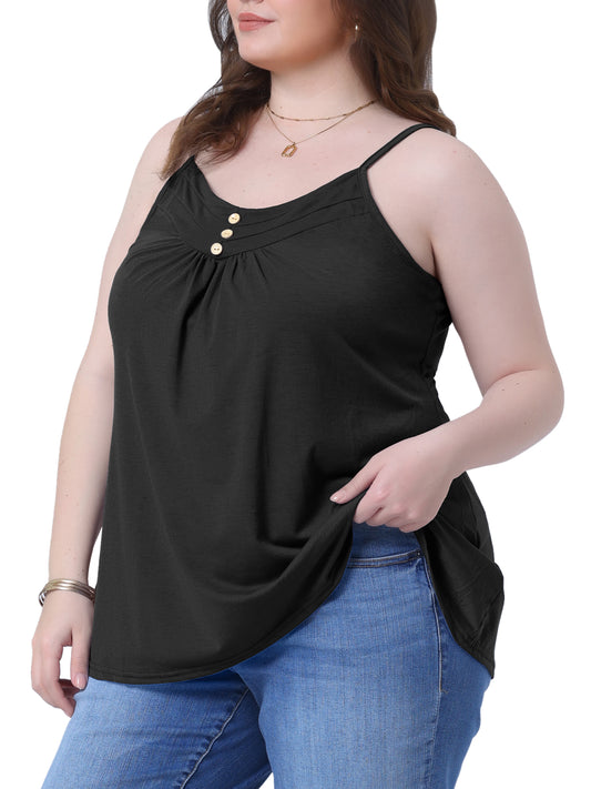 Women's Plus Size Summer Casual Tank Tops Button V Neck Pleated Camisoles Cami Top