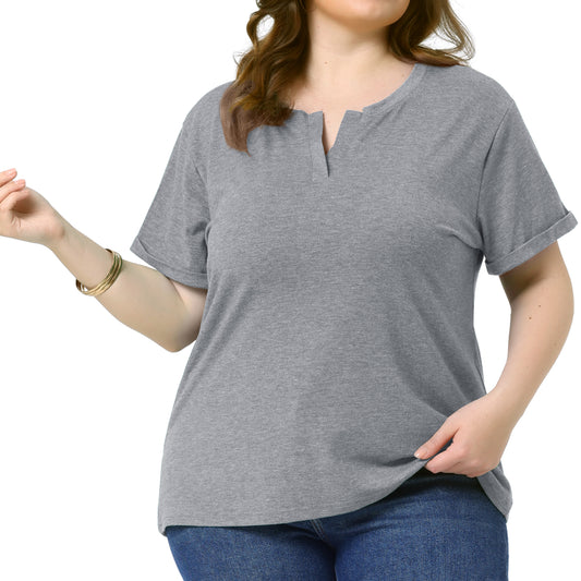 Women Plus Size T-Shirt Short Sleeve Notched V Neck Lightweight Casual Summer Tees Top