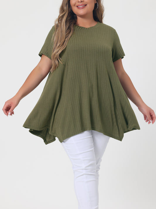 Women's Plus Size Short Sleeve Tunic Handkerchief Hem Summer Casual Top
