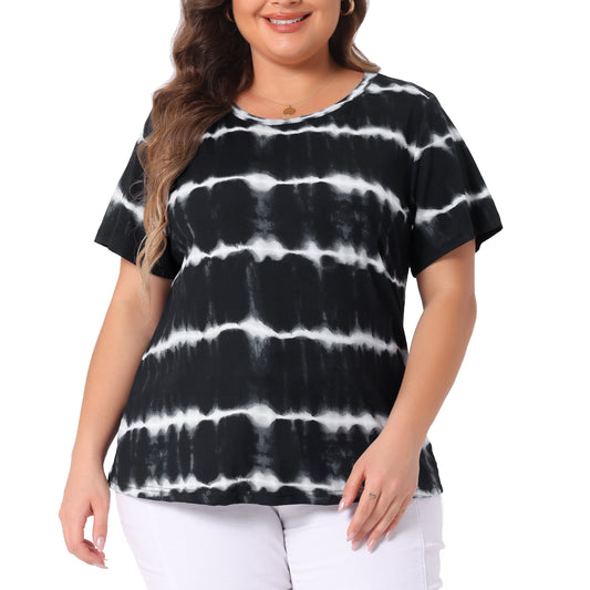 Women Plus Size Round Neck Short Sleeve T-Shirts Rainbow Tie Dye Tee Top
