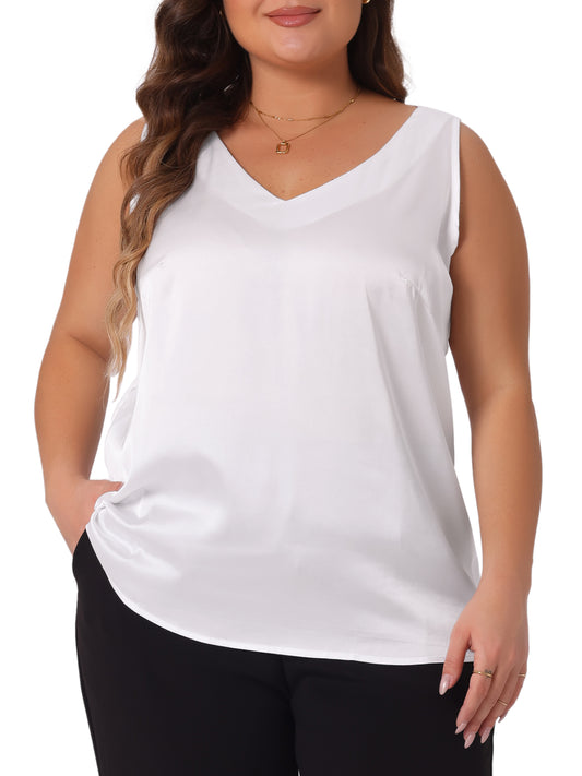 Women Plus Size Satin Tank Tops V Neck Casual Sleeveless Summer Basic Tank