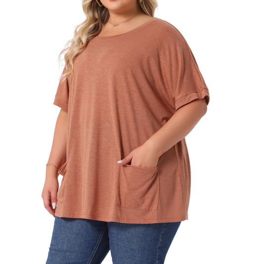 Women's Plus Size Crew Neck Short Sleeve Tops Loose Fit Casual Summer T-Shirt Tee Tops with Pocket