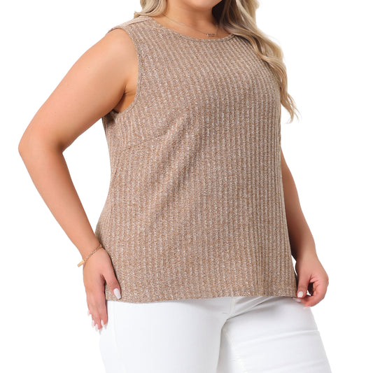 Women Plus Size Summer Round Neck Basic Sleeveless Casual Tank Top