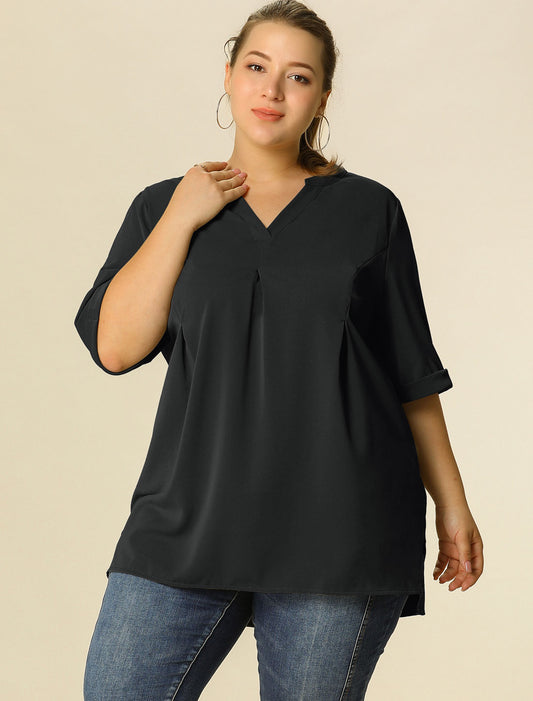 Women's Plus Size Blouse V Neck Casual Solid Blouses 1/2 Sleeve Tunic Top