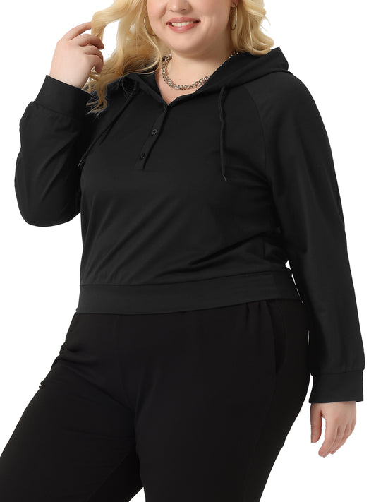 Women Plus Size Hoodies Button Collar Drawstring Hoodies Pullover Sweatshirts Top