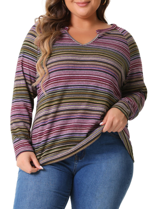 Women Plus Size Casual Top Long Sleeve T-Shirt Notch V Neck Tunic