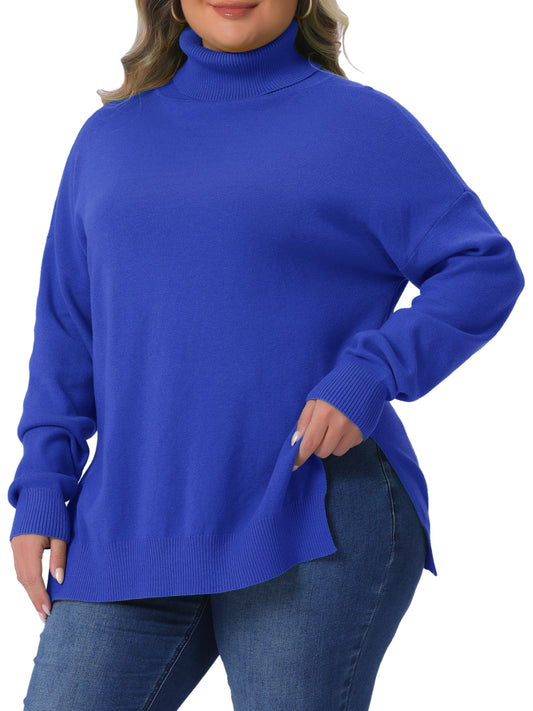 Women Plus Size Sweaters Turtle Neck Long Sleeve Side Slit Casual Loose Pullover Knit Top