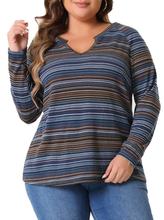 Women Plus Size Casual Top Long Sleeve T-Shirt Notch V Neck Tunic