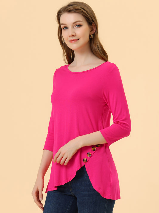 Women's Tunic T-shirt Loose Asymmetry Hem 3/4 Sleeve Round Neck Casual Basic Top (Available in Plus Size)