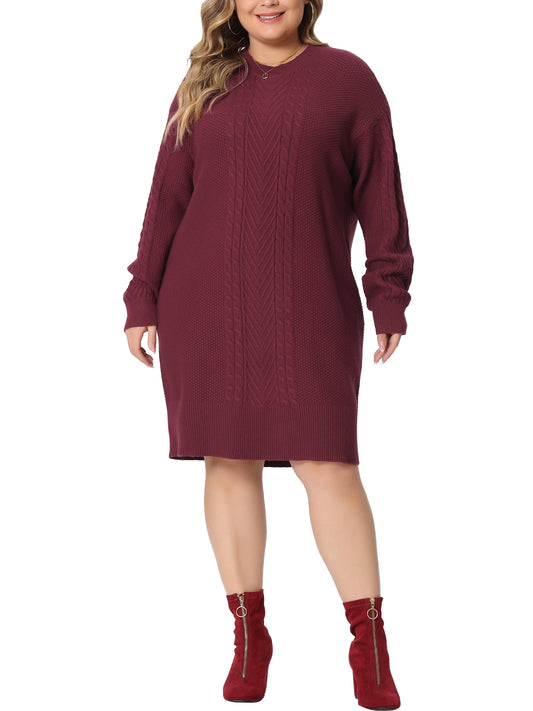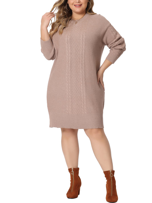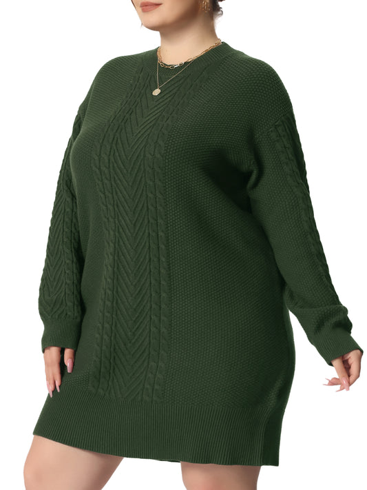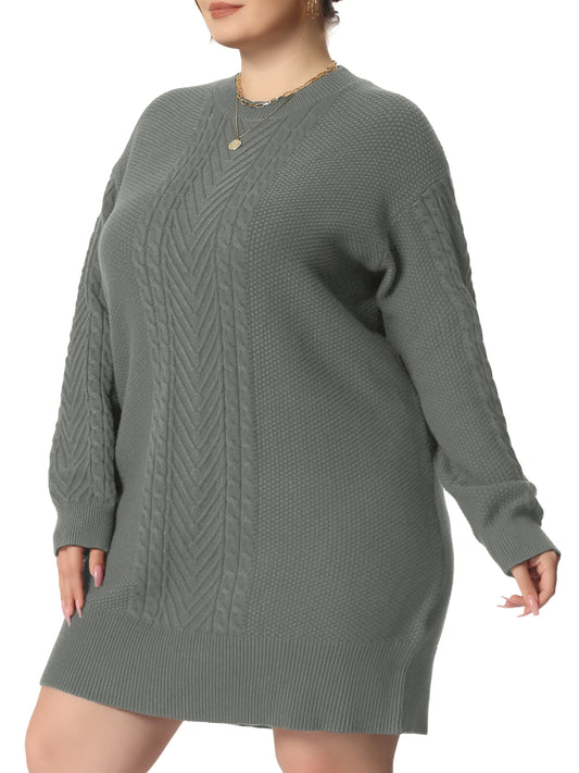 Women Plus Size Fall Crewneck Long Sleeve Knit Tunic Pullover Short Sweater Dress