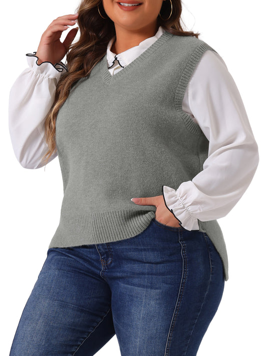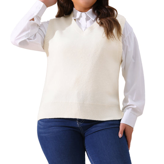 Women Plus Size Sweater Vest V Neck Knit Vests Solid Classic Sleeveless Pullover Sweaters Tops