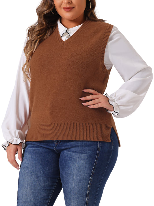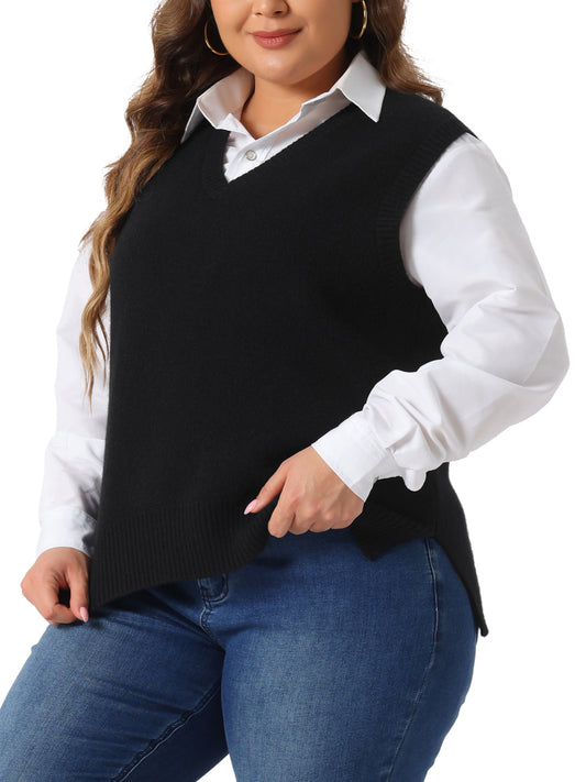 Women Plus Size Sweater Vest V Neck Knit Vests Solid Classic Sleeveless Pullover Sweaters Tops