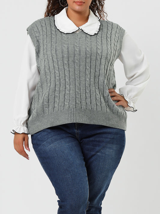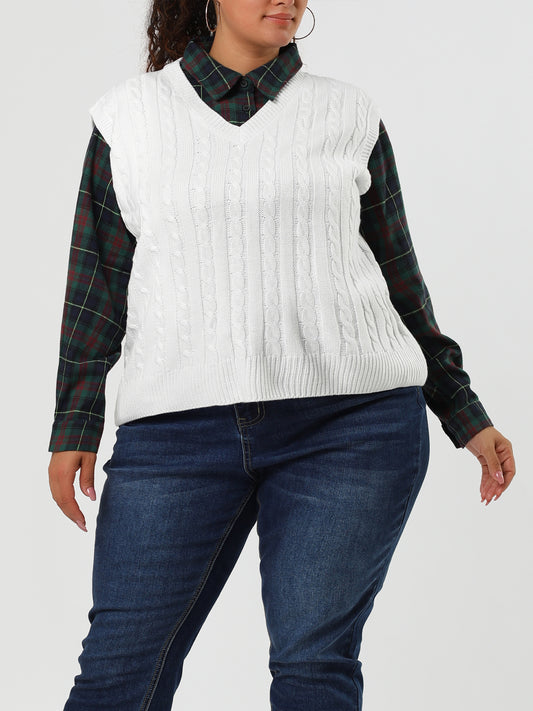 Women's Plus Size Sweater Vest V Neck Cable Knit Sweater Sleeveless Pullover Sweater Vests