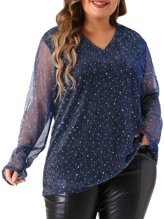 Women Plus Size Tops Long Sleeve Glitter Club Party Shirt Sparkle Blouse