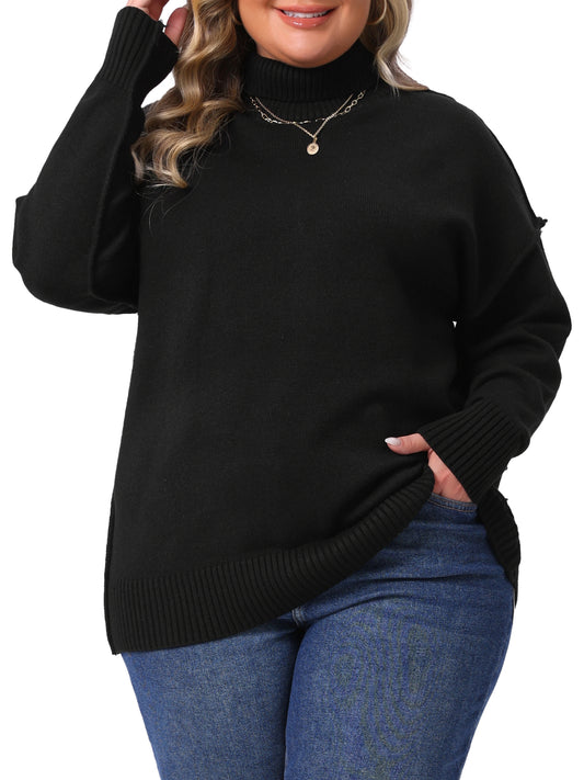 Women Plus Size Sweater Turtleneck Long Sleeve Knit Top Casual Loose Pullover Knitwear