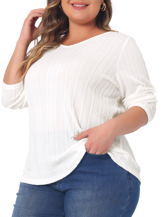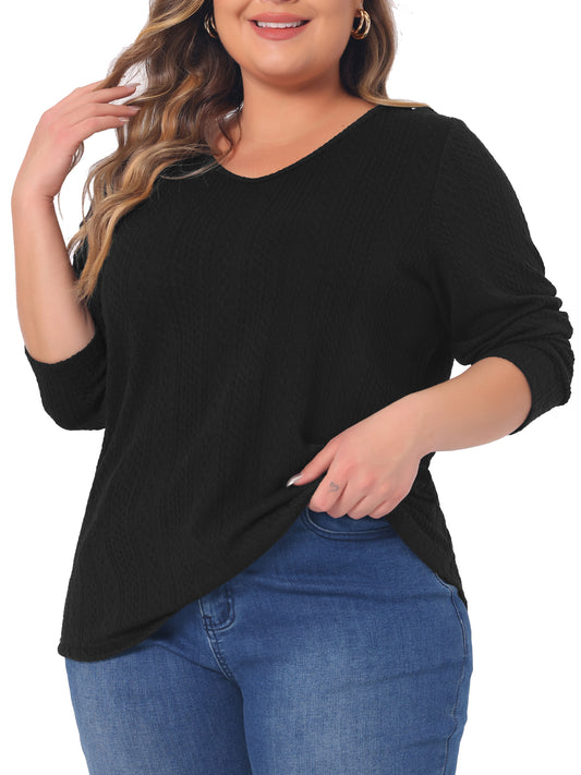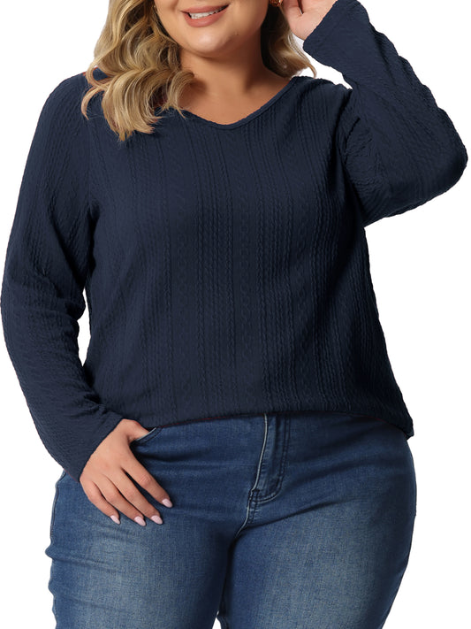 Women Plus Size Top V Neck Long Sleeve Basic Knit Pullover Tee T-Shirt