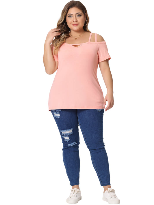 Women Plus Size Tops Cold Shoulder Sexy Cut Out Short Sleeve Criss Cross Summer Pullover