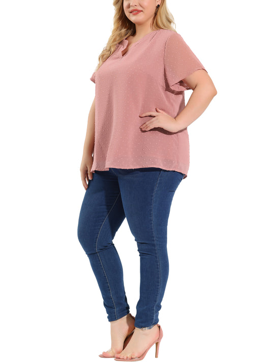 Women Plus Size Summer Top Swiss Dots Notched Neck Short Sleeve Blouse