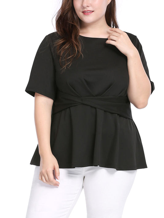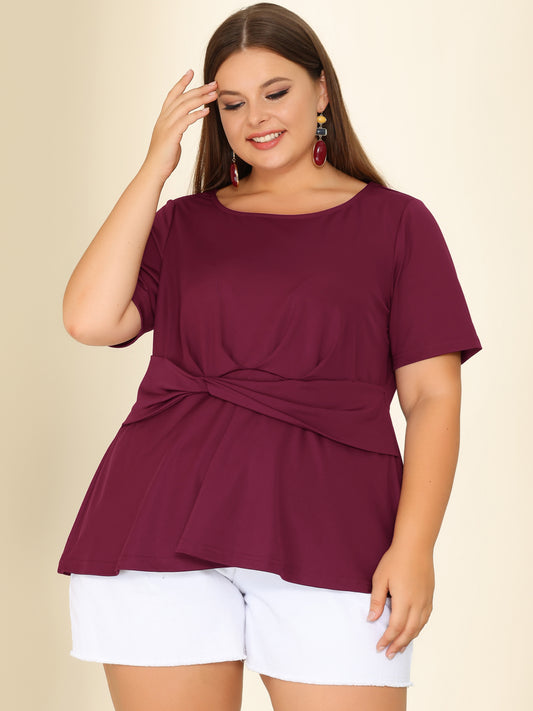 Women's Plus Size Short Sleeves Twisted Knot Front Peplum Top