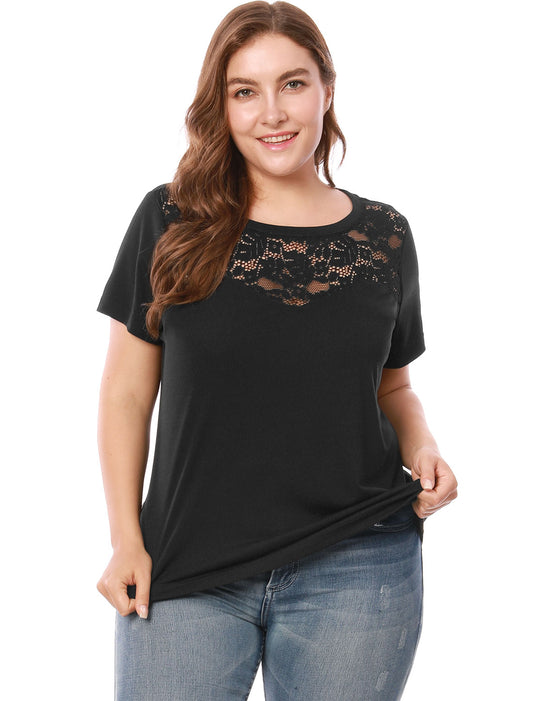Women's Plus Size Top Casual Tshirt Short Sleeve Hollow Mesh Lace Top