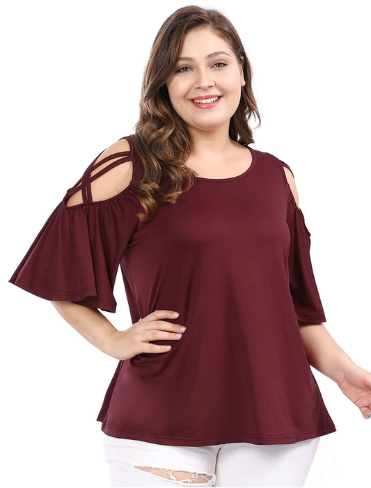 Women's Plus Size Cold Shoulder Bell Sleeve Summer Top