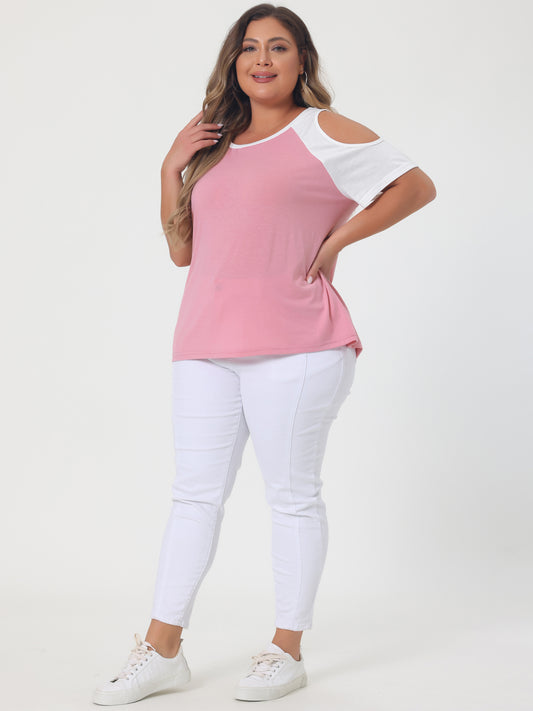Women's Plus Size Contrast Short Sleeve Cold Shoulder T-Shirt Top Summer Tee