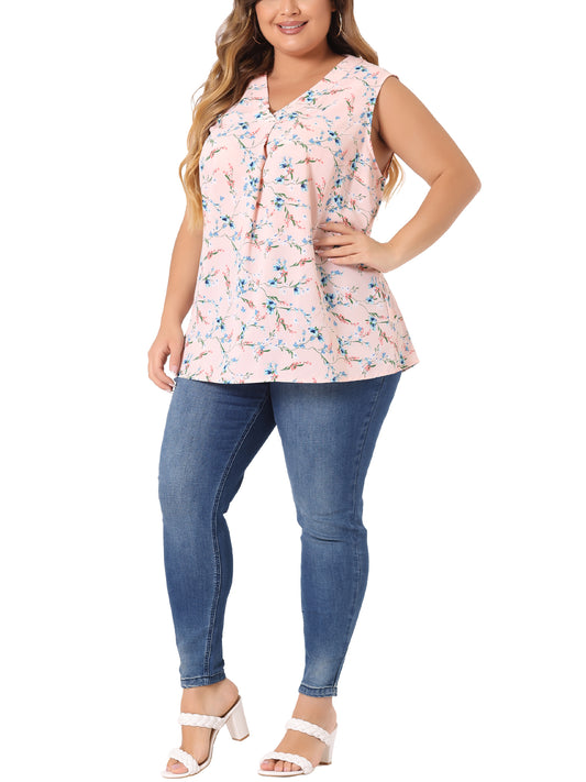 Women Plus Size Top Floral Blouse Sleeveless Tank Top