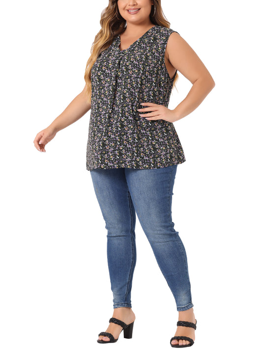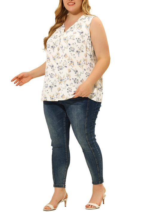 Women Plus Size Top Floral Blouse Sleeveless Tank Top