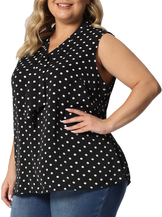Women's Plus Size Polka Dots Summer V Neck Tie Neck Sleeveless Blouse Work Tank Top