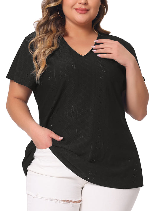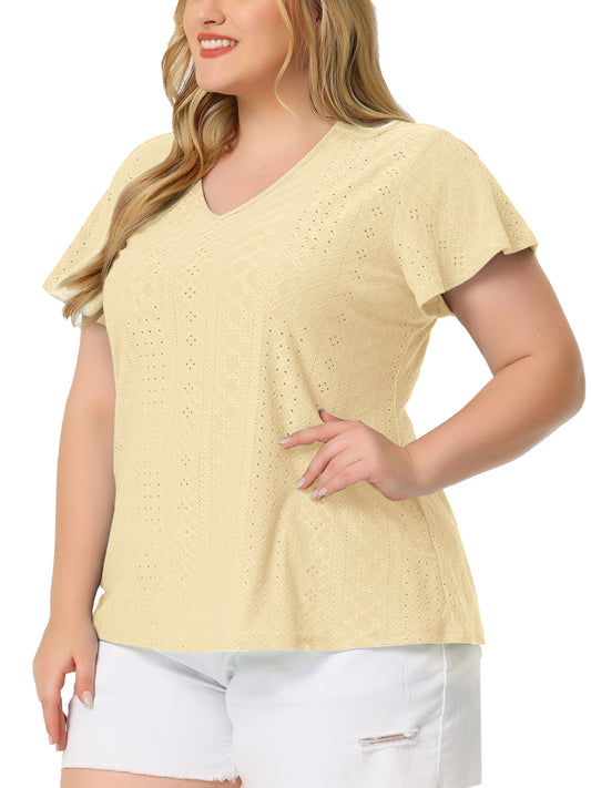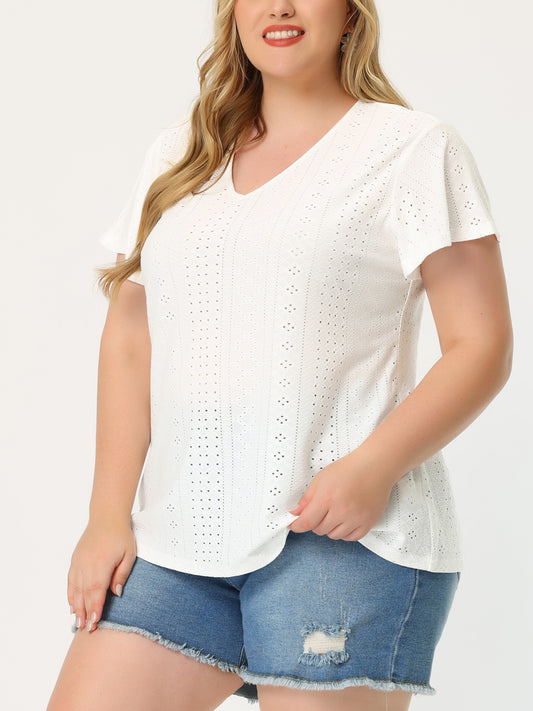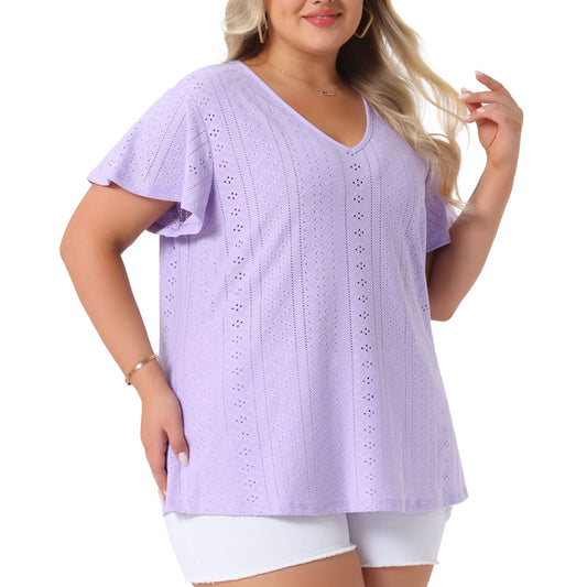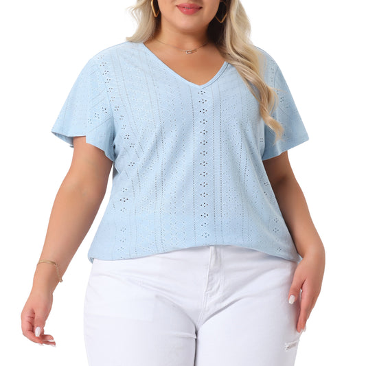 Women's Plus Size Summer Tee V Neck Hollow Flare Short Sleeve Casual Top Tunic