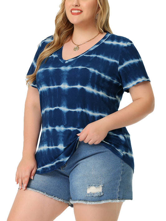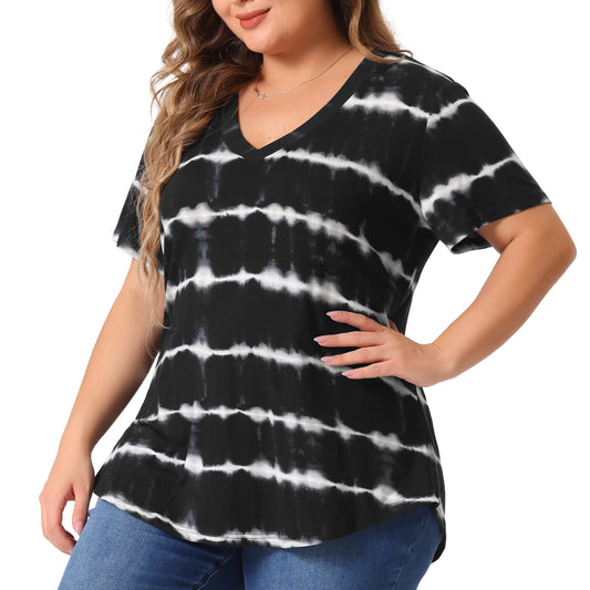 Women's Plus Size Summer Top V Neck Short Sleeve Casual Tie Dye