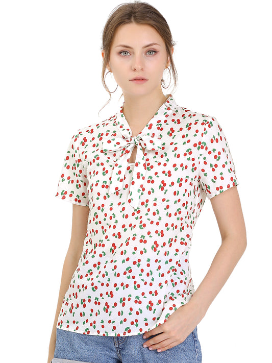 Women's Bow Tie Neck Short Sleeve Printed Chiffon Blouse
