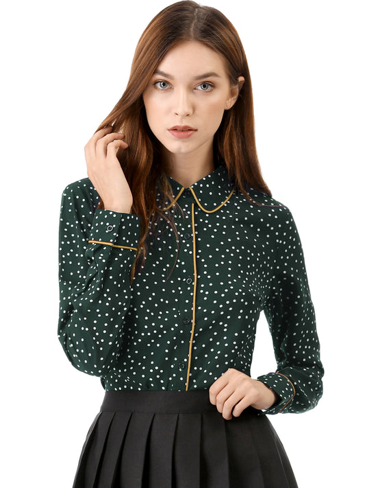 Women's Long Sleeve Contrast Peter Pan Collar Office Work Button Down Shirt