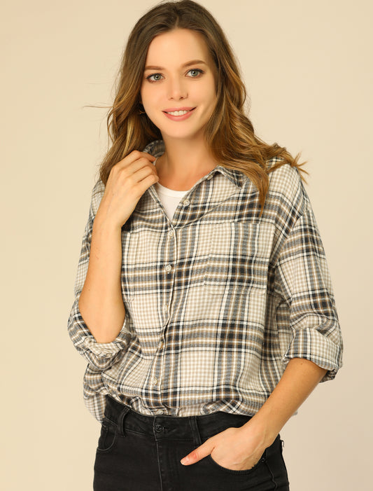 Women's Roll Up Long Sleeve Button Down Plaid Flannel Shirt