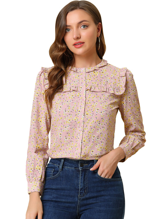 Women's Victorian Ruffled Neck Long Sleeve Ditsy Floral Blouse Shirt