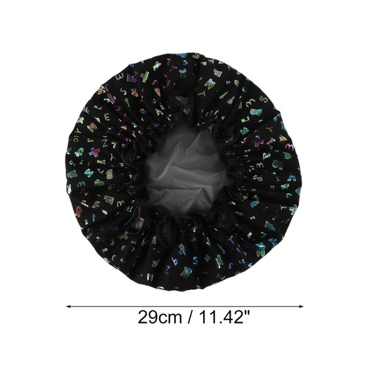 1 Pc Women Double Layer Alphabet Pattern Shower Cap for Bathroom Vacation Black