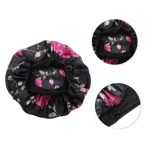 1 Pc High Elasticity Vintage Print Shower Cap for Bathroom Black Red
