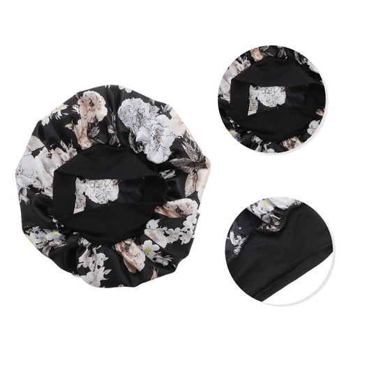 1 Pc High Elasticity Vintage Print Shower Cap for Bathroom Black