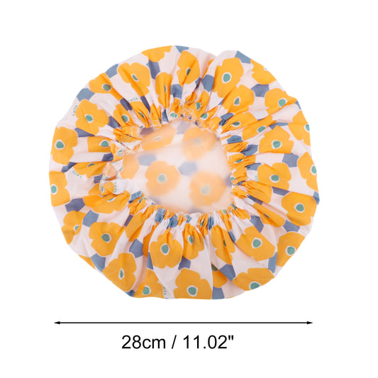 1 Pc Women's Flower Pattern Shower Cap Hair Cap for Bath Yellow