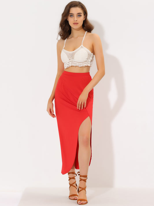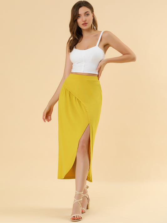 Women's Ruched Split High Waist Summer Long Maxi Skirt