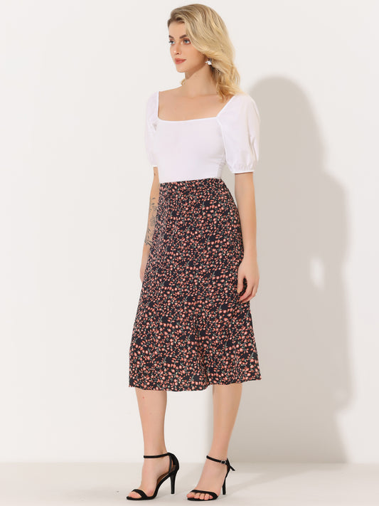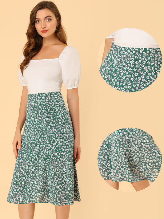 Women's Floral Midi Skirt Peasant Elastic Waist A-Line Ditsy Printed Skirts