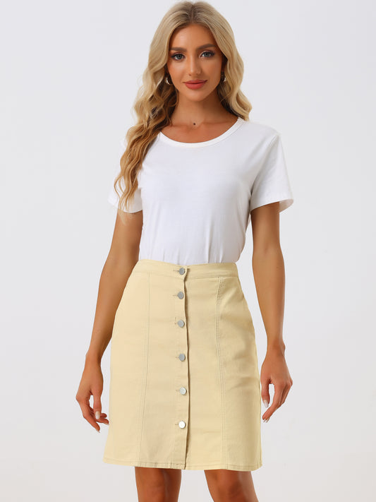Women's Denim Skirts Summer Casual A-Line Short Button Down Jean Skirt