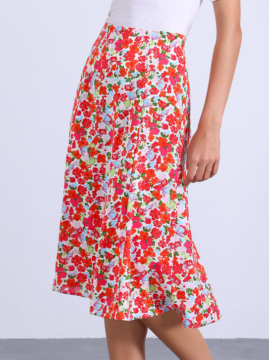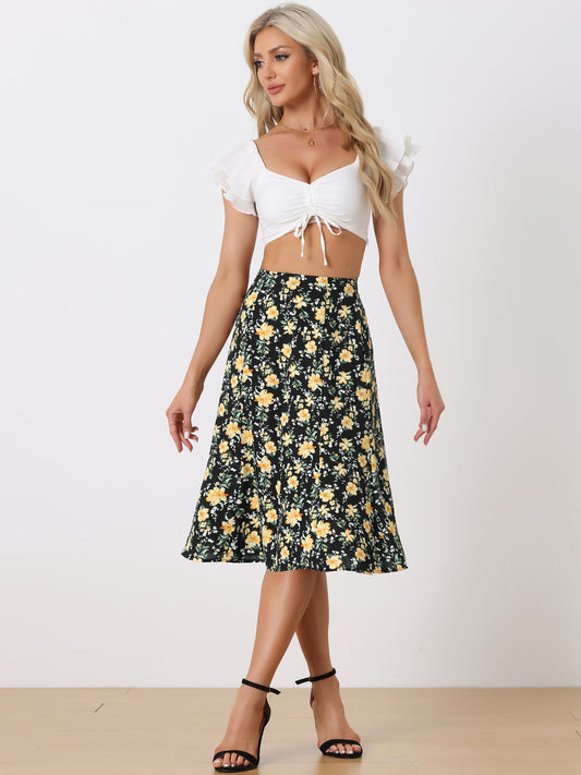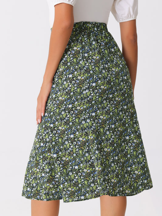 Women's Floral Midi Skirt Peasant Elastic Waist A-Line Ditsy Printed Skirts