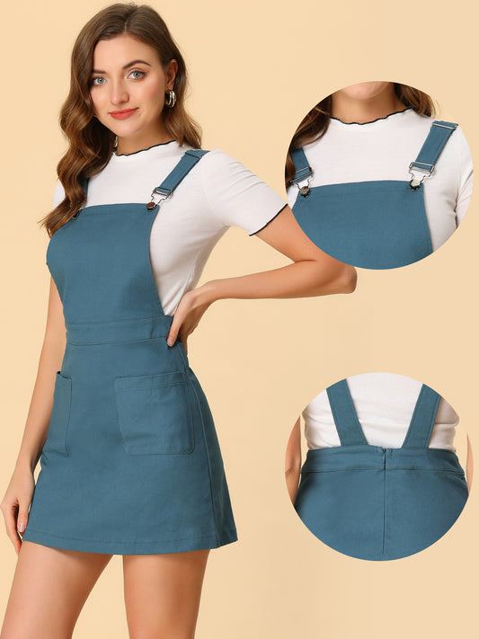 Women's Adjustable Strap Suspender Skirt with Pocket A-Line Pinafore Overall Dress